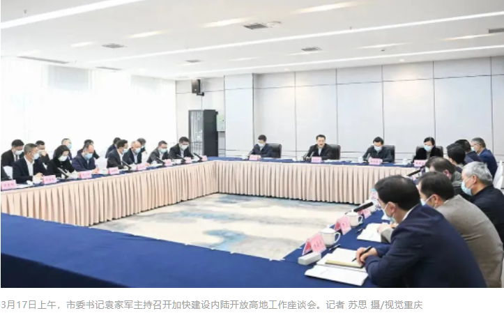 3月17日上午,市委書(shū)記袁家軍前往兩江新區(qū),實(shí)地調(diào)研重慶加快建設(shè)內(nèi)陸開(kāi)放高地并召開(kāi)座談會(huì),聽(tīng)取全市內(nèi)陸開(kāi)放高地建設(shè)總體情況匯報(bào)。市領(lǐng)導(dǎo)張鴻星、羅藺、張國(guó)智參加。